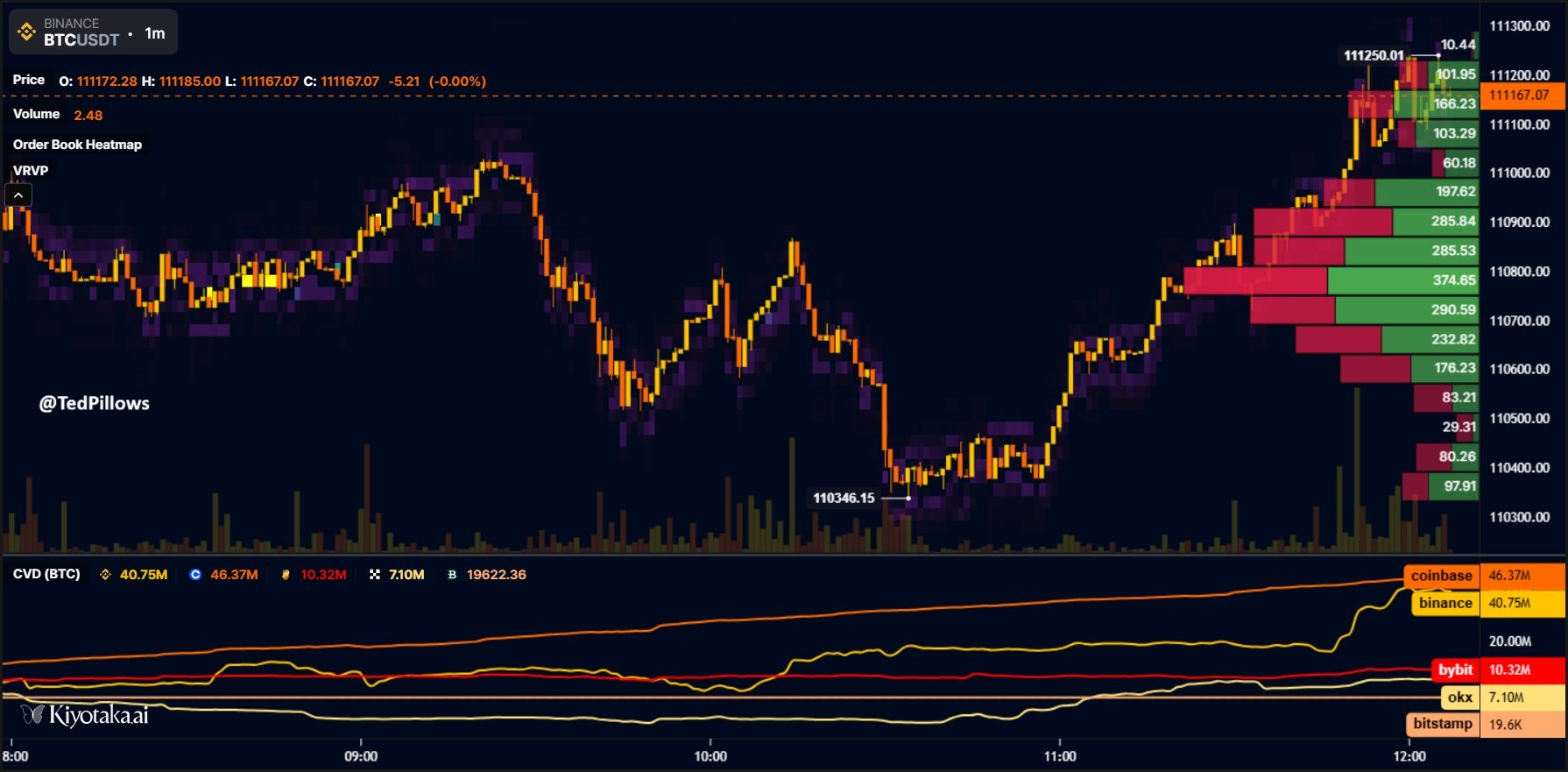 “Binance and Coinbase are bidding on $BTC now,” crypto investor and entrepreneur Ted Pillows confirmed on X.
