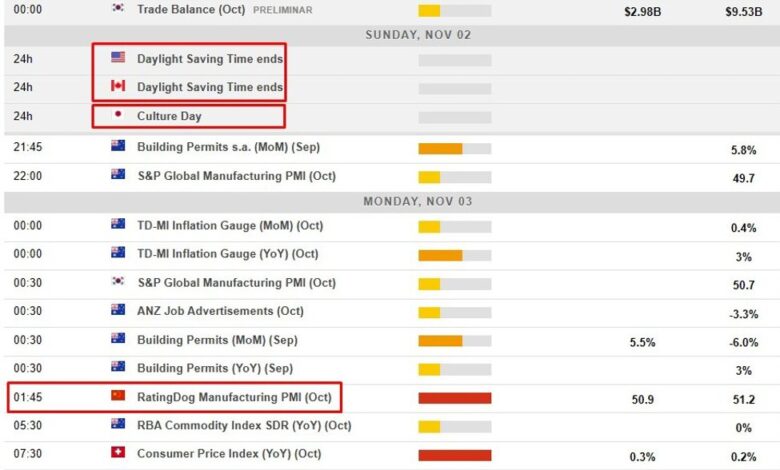 Economic calendar in Asia Monday, November 3, 2025 brings another China PMI reading