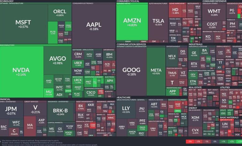 Investors should weigh increasing exposure to the technology sector, especially in semiconductor stocks like NVDA and MU, which are performing well. The consumer cyclical sector, particularly starring Amazon, offers promising opportunities as it continues its upward trajectory.