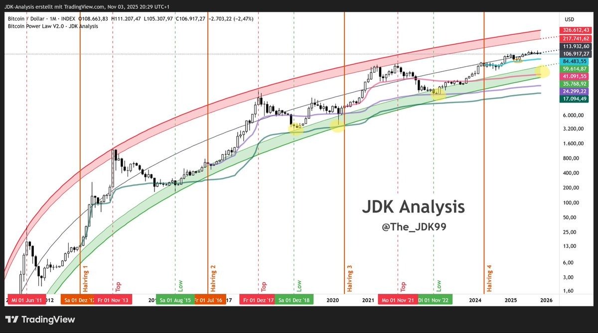 Using the power law model, technical analyst JDK Analysis asked veteran trader Peter Brandt to weigh in on how low Bitcoin price could go.