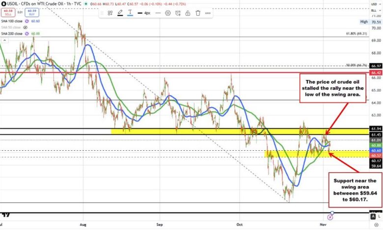 - The price remains below the swing area between $61.45 and $61.94. That is topside resistance.