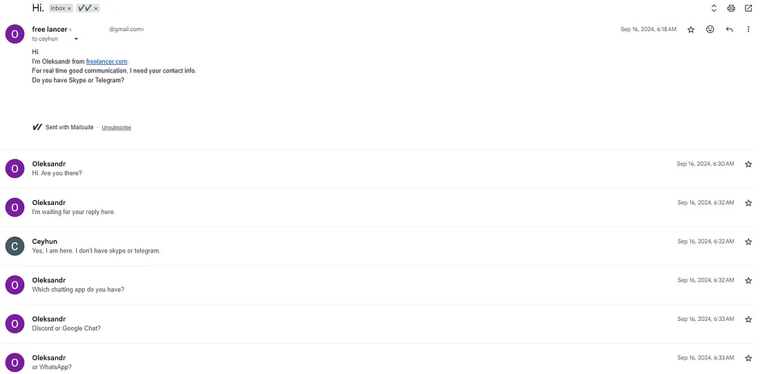 Operatives are contacting job seekers on Upwork, Freelancer and GitHub before moving conversations to Telegram or Discord, where they coach them through setting up remote access software and passing identity verifications.