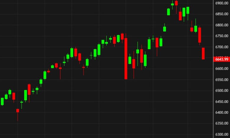 A tough week in US stock markets is getting tougher by the minutes. The S&P 500 is at the lows of the day, down 1.1% to 6646. That’s the loweset since Oct 17 as the late-October low is cracked and more stops are hit.
