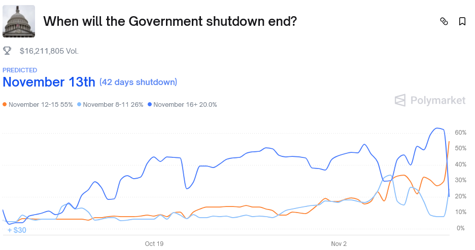 Ongoing uncertainty over when the US government would reopen has been a key factor holding back Bitcoin (BTC) and the broader crypto market from mounting a rebound.