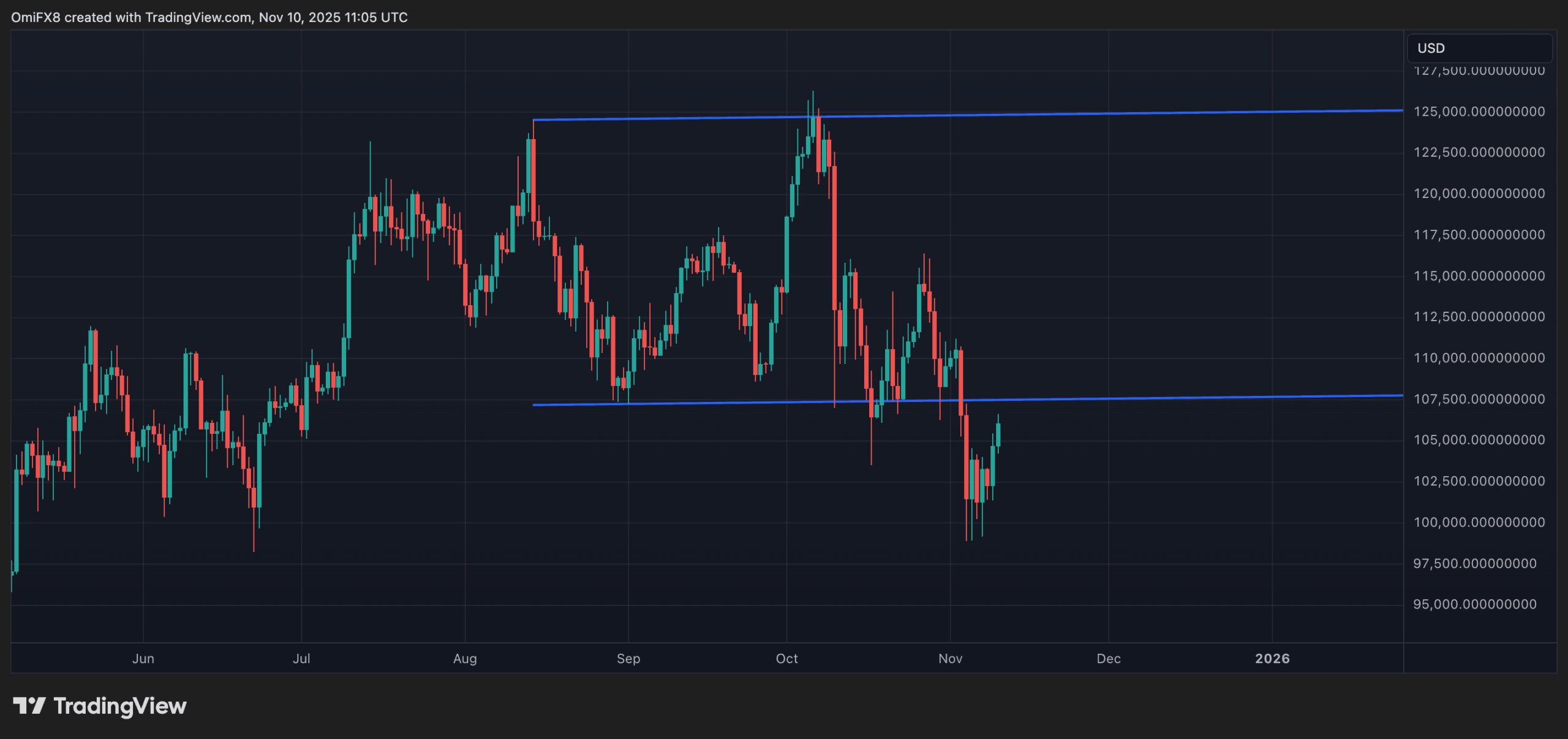• Conversely, a bull failure would reinforce the range breakdown, potentially leading to a deeper sell-off below $100,000.