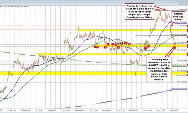 Going forward, a break below 1.4000 would be a bearish signal, likely triggering further downside momentum toward the next key support zone between 1.3968 and 1.3975. Staying above 1.4000, however, keeps the pair in a consolidative mode with traders eyeing the 200-hour MA as the near-term pivot for directional bias (at 1.4043).