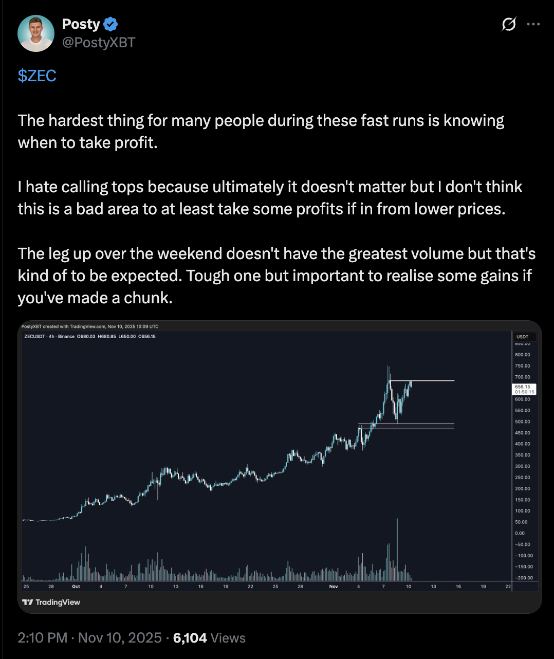 Several analysts anticipate Zcash will undergo a sharp correction in the coming days as a result. That includes Altcoin Sherpa, who said it is a “great short” and may suffer a “violent end.”