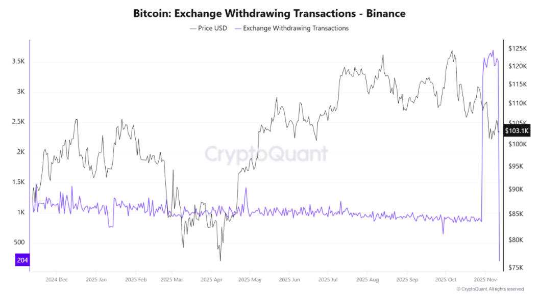 “In early November, Binance recorded a sudden spike in Bitcoin withdrawal transactions — one of the largest surges in 2025,” contributor XWIN Research Japan wrote in one of CryptoQuant’s “Quicktake” blog posts.