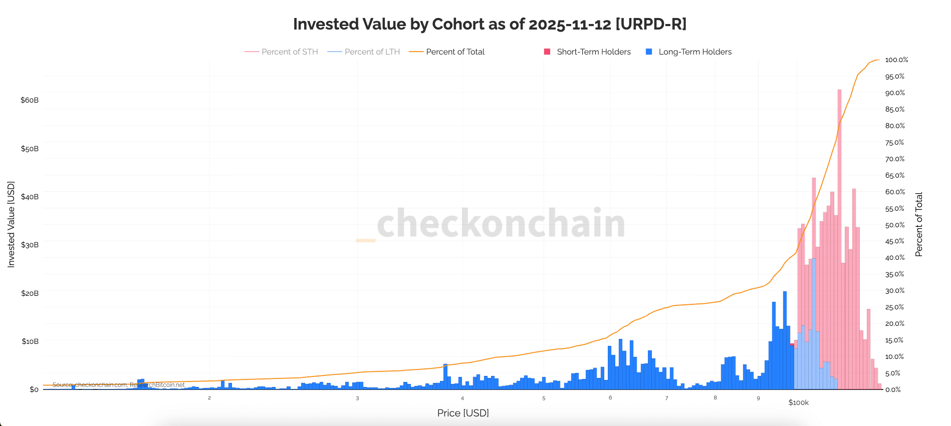 Chart showing the value invested in Bitcoin by cohort as of Nov. 12, 2025 (Source: Checkonchain)