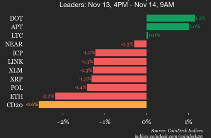 CoinDesk Indices presents its daily market update, highlighting the performance of leaders and laggards in the CoinDesk 20 Index.