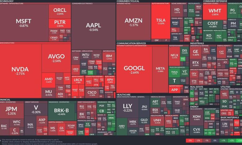 The U.S. stock market kicks off the week with notable declines in the technology sector. Tech giants have led the market with broad losses, overshadowing performance across other sectors. Dive into today’s heatmap analysis for detailed insights!