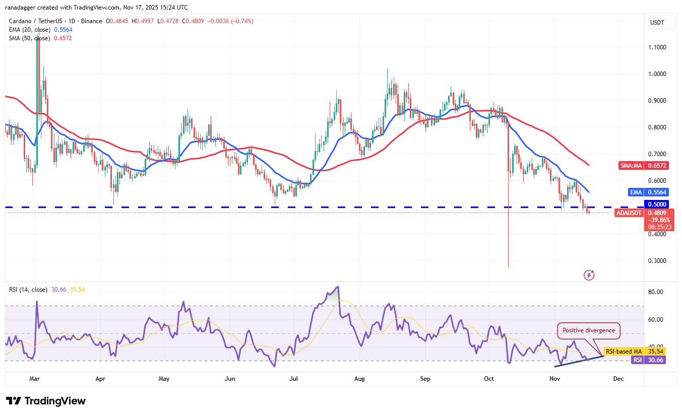 Cardano (ADA) dipped below the $0.50 support on Friday, indicating that the bears remain in charge.