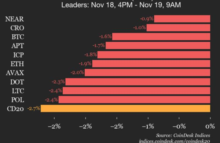 CoinDesk 20 Performance Update: Index Declines 2.7% as All Constituents Trade Lower