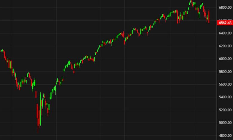 That’s looking awfully lot like a head and shoulders pattern with a target near 6200 (-5.4%).