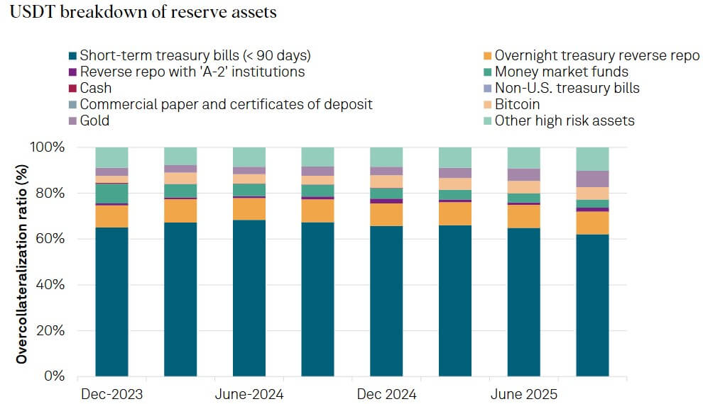 The result is an unusual split. Tether is buying assets that central banks have used for centuries to signal financial strength. S&P has concluded that the mix weakens the stablecoin’s reliability.