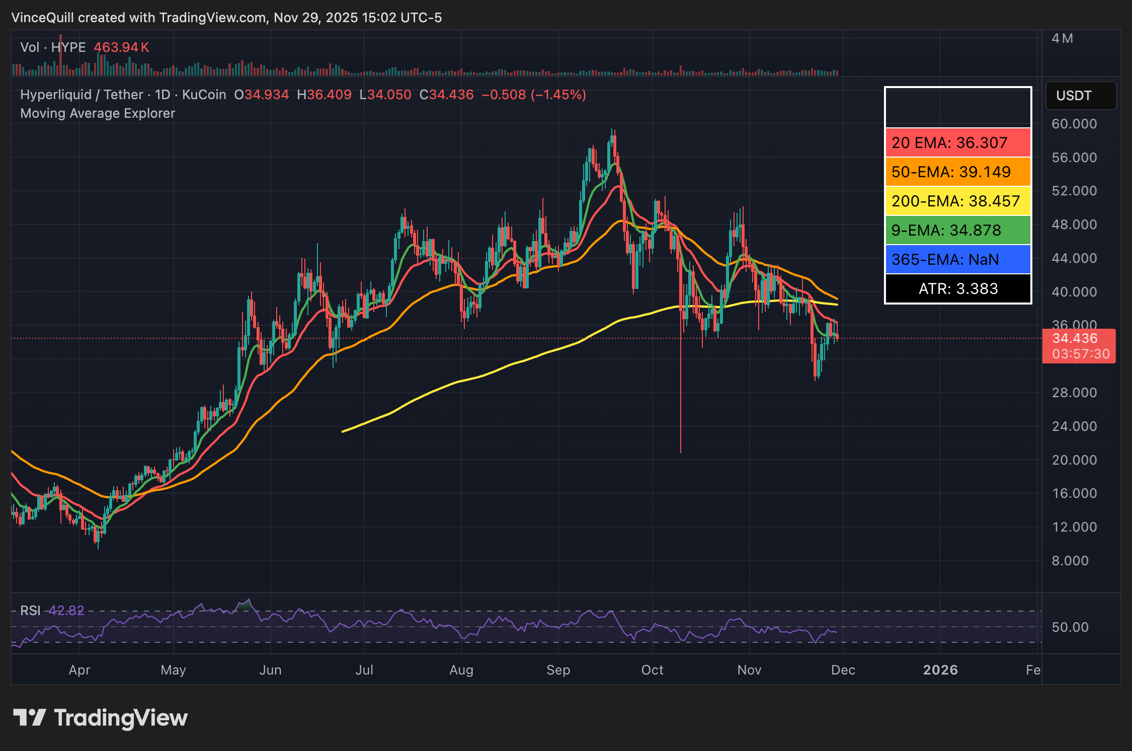 The price of HYPE has declined by about 42% from its all-time high of about $59.40, reached in September, and is trading well below its 200-day moving average, a critical support level.