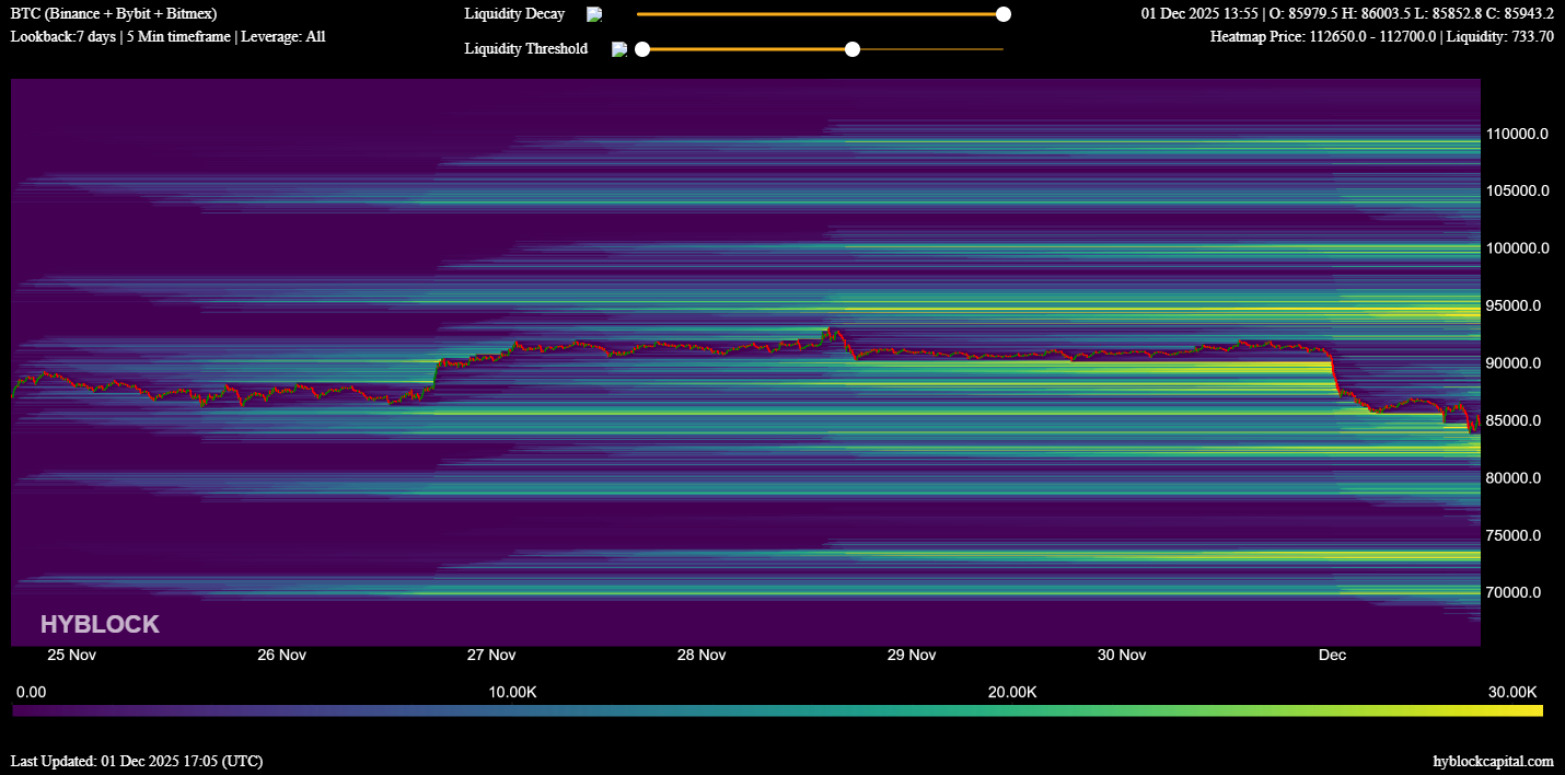 Bitcoin (BTC) attempted to close above a key resistance zone last week after briefly spiking to roughly $93,300. However, BTC failed to stop a mean-reversion trend, with the price dropping below $85,000 on Monday.