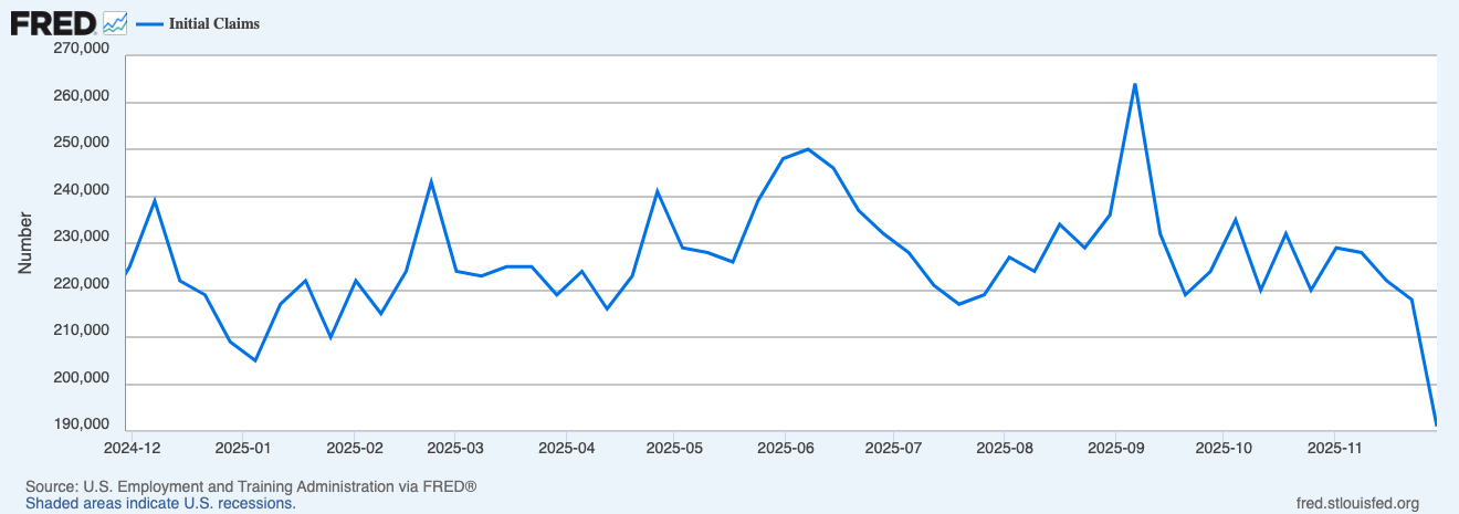 Both initial and ongoing claims came in below expectations on the day, per data from the St. Louis Fed.