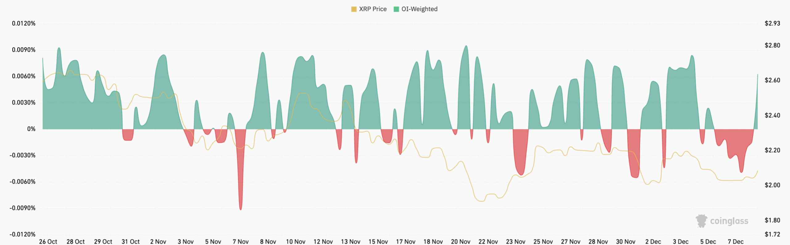 XRP’s daily funding rate has flipped positive to 0.0189% from 0.0157% a day prior, suggesting that most traders were taking long positions.