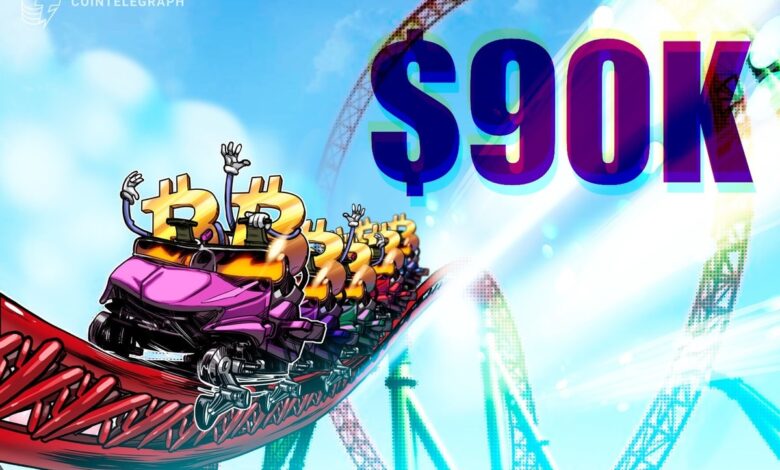 Bitcoin (BTC) fell back below $90,000 around Monday’s Wall Street open as US selling pressure returned.