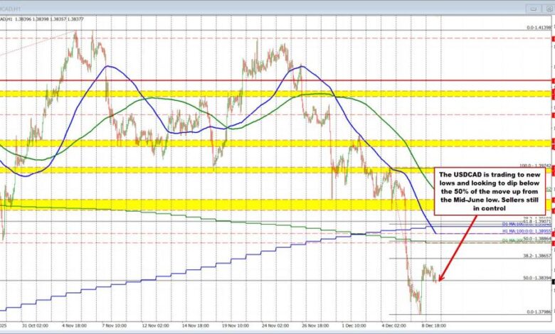 The USDCAD saw an aggressive move lower last Friday after Canada delivered a second straight month of stronger-than-expected employment gains. That upside surprise for the Canadian economy produced a decisive shift in sentiment and triggered a sharp downside push in the pair. In the process, the price broke below both the 100-day and 200-day moving averages at 1.3907 and 1.3886, marking a meaningful technical deterioration. Once below those key longer-term trend indicators, the selling accelerated, driving the pair through the 50% retracement of the entire May–June rally at 1.3839. Momentum ultimately carried the decline toward the 1.3800 psychological area, where the market printed a low at 1.37986 during yesterday’s North American session.