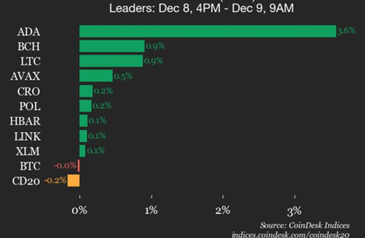 Leaders: ADA (+3.6%) and BCH (+0.9%).