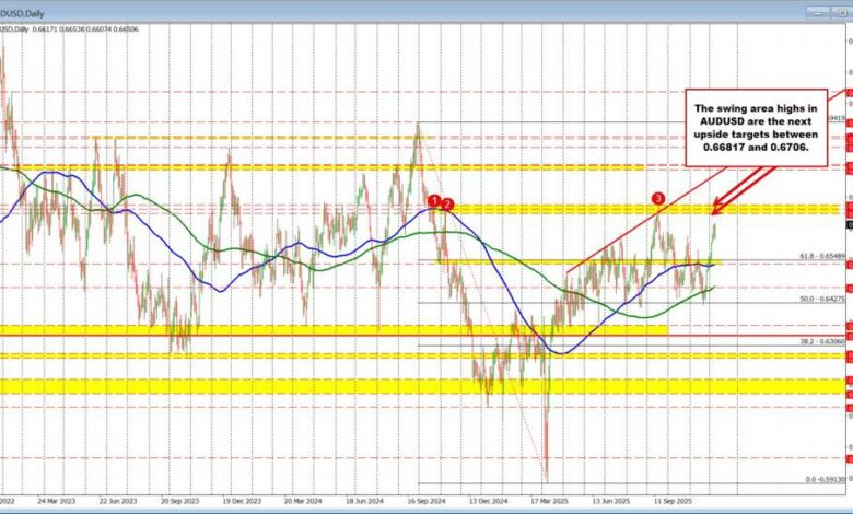 Next major upside targets sit at 0.66817–0.6706, with hourly support at the 100-hour moving average guiding short-term trend control.