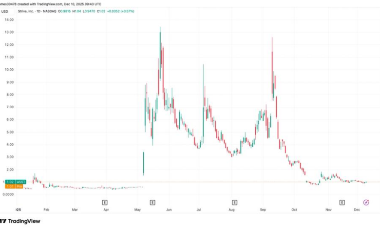 Strive’s common stock, ASST, trades near $1 and is down about 2% in pre market activity.