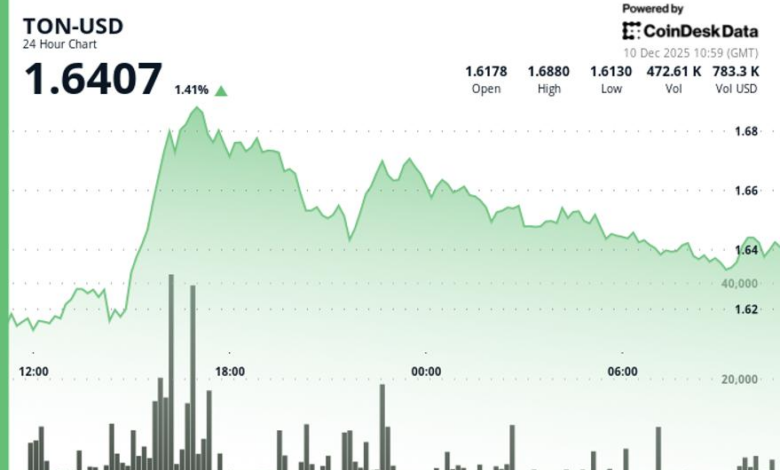 Trading volume fell 6.91% below seven-day averages, according to CoinDesk Research’s technical analysis data model, signaling weak participation from both institutional and retail traders. Despite the quiet session, TON maintained its support above $1.60, a level it has held for several days.