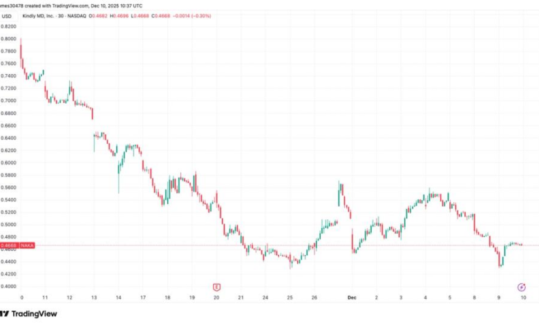 The one-year loan signed by KindlyMD’s subsidiary Nakamoto Holdings matures on Dec. 4, 2026 and bears an annual interest rate of 8%, KindlyMD said in an SEC filing Tuesday. The agreement allows it to borrow fiat or digital assets “from time to time” under individual loan term sheets.