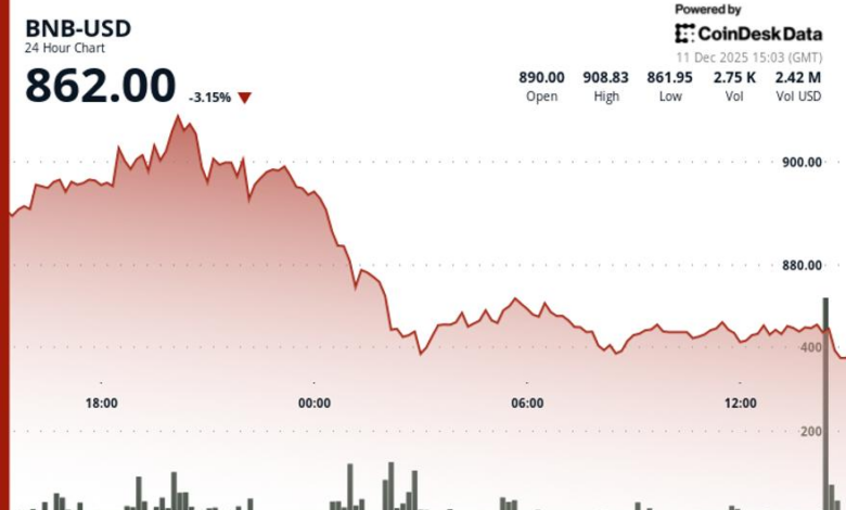 BNB Drops Below $865 as Crypto Market Moves Lower