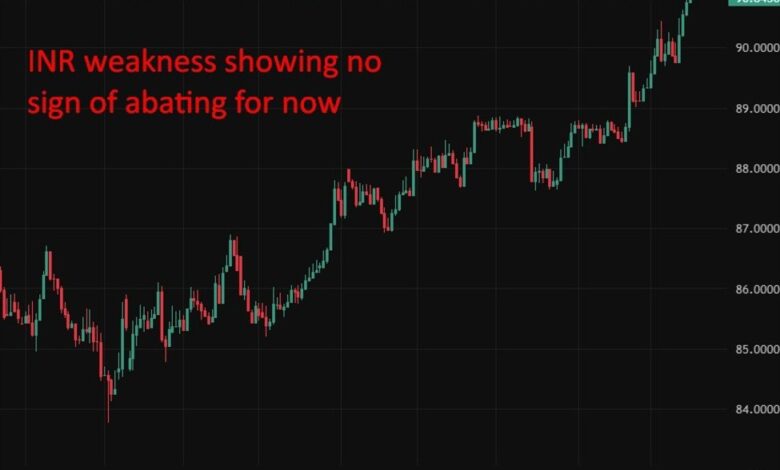 One-month non-deliverable forward pricing suggests USD/INR will open in the 90.80–90.85 range, extending losses after the rupee closed at 90.73 on Monday. The currency slipped to a new all-time low of 90.7875 during the previous session, marking a third consecutive day of record weakness.