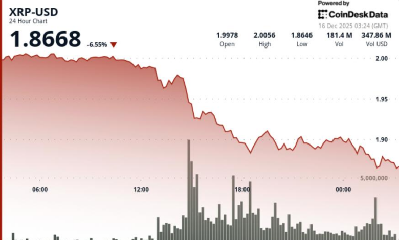 XRP declined 2.6% over the past 24 hours, falling from $1.95 to $1.90 as broader crypto markets showed signs of fatigue. The move followed multiple failed attempts to sustain momentum above recent resistance, leaving XRP vulnerable once support levels were tested again.