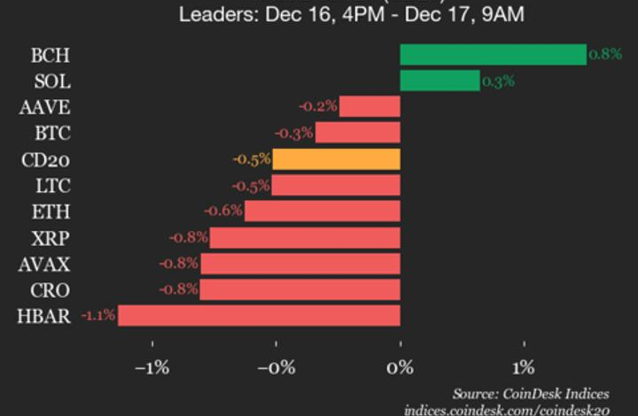 Leaders: BCH (+0.8%) and SOL (+0.3%).
