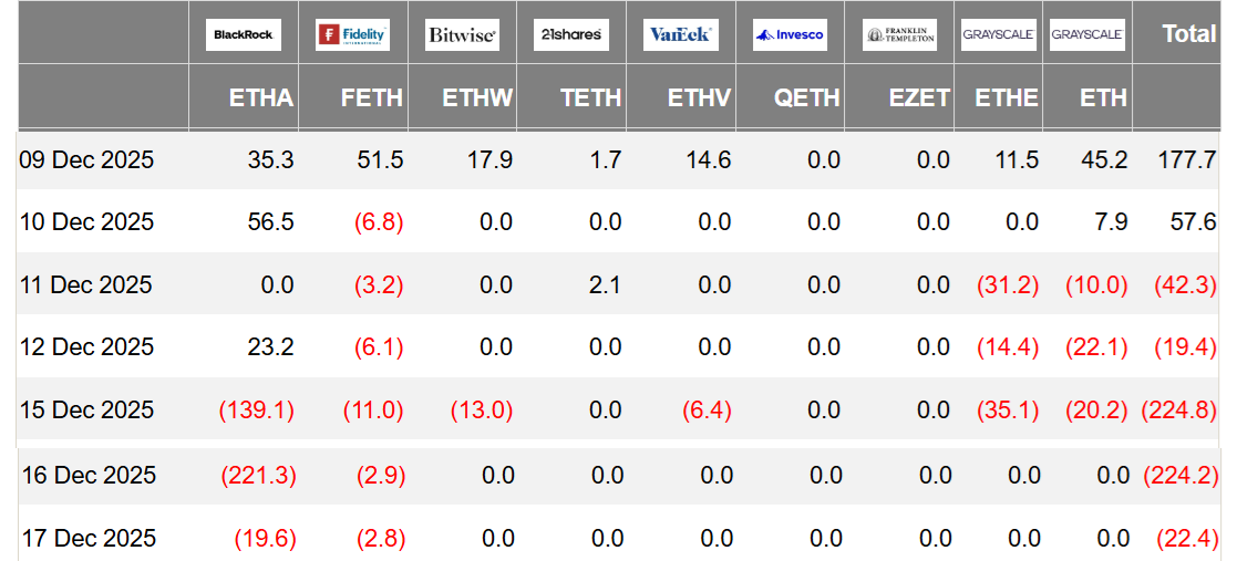 US-listed Ether ETFs saw heavy outflows, signaling fading institutional interest as network fees, staking and leverage demand declined.