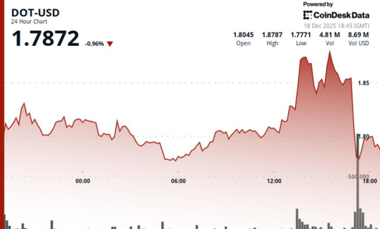 DOT underperformed wider crypto markets. The broader market gauge, the CoinDesk 20 index, was 0.2% lower at publication time.