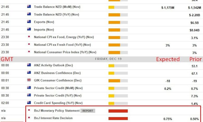 Economic and event calendar in Asia December 19, 2025 – Bank of Japan rate hike expected
