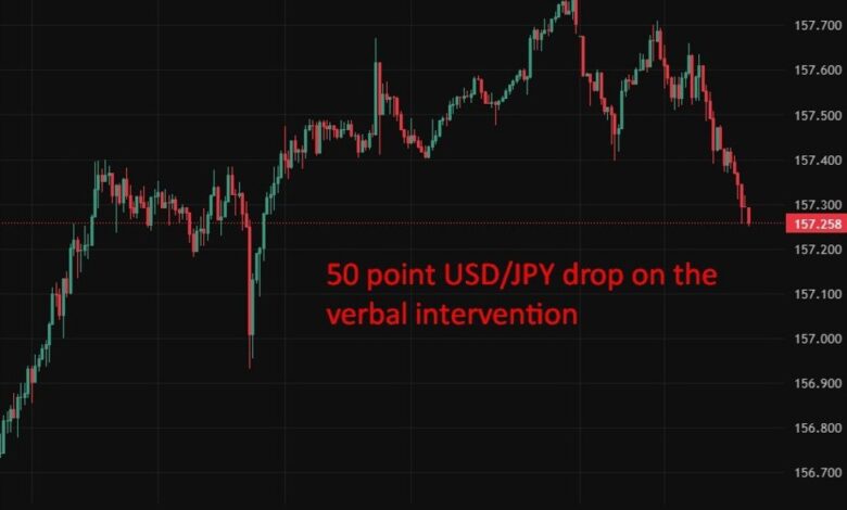 USD/JPY slipped toward 157.25 from highs near 157.75