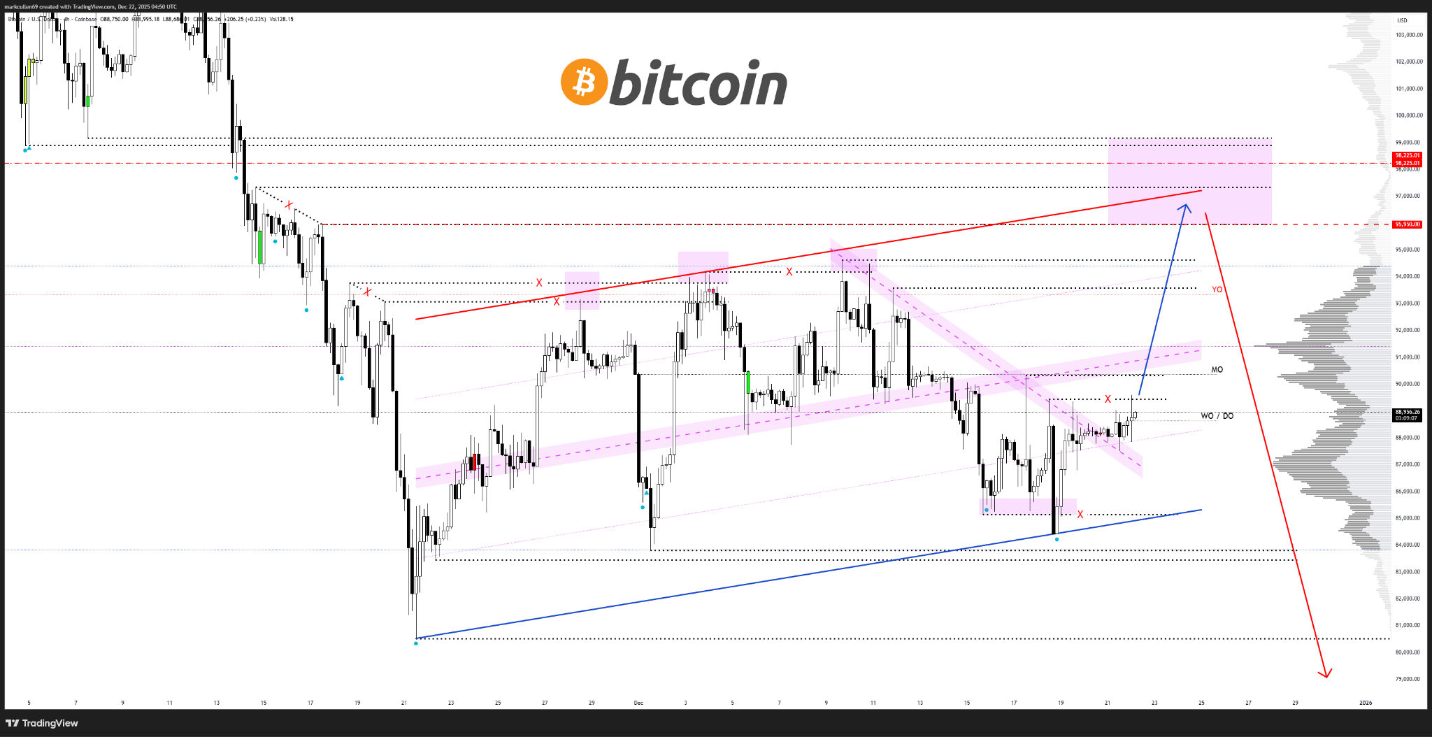 Fellow analyst Captain Faibik said Bitcoin was looking to break out of a bullish megaphone pattern after consolidating within a wide range stretching from $82,000 to $95,000 since Nov. 22.