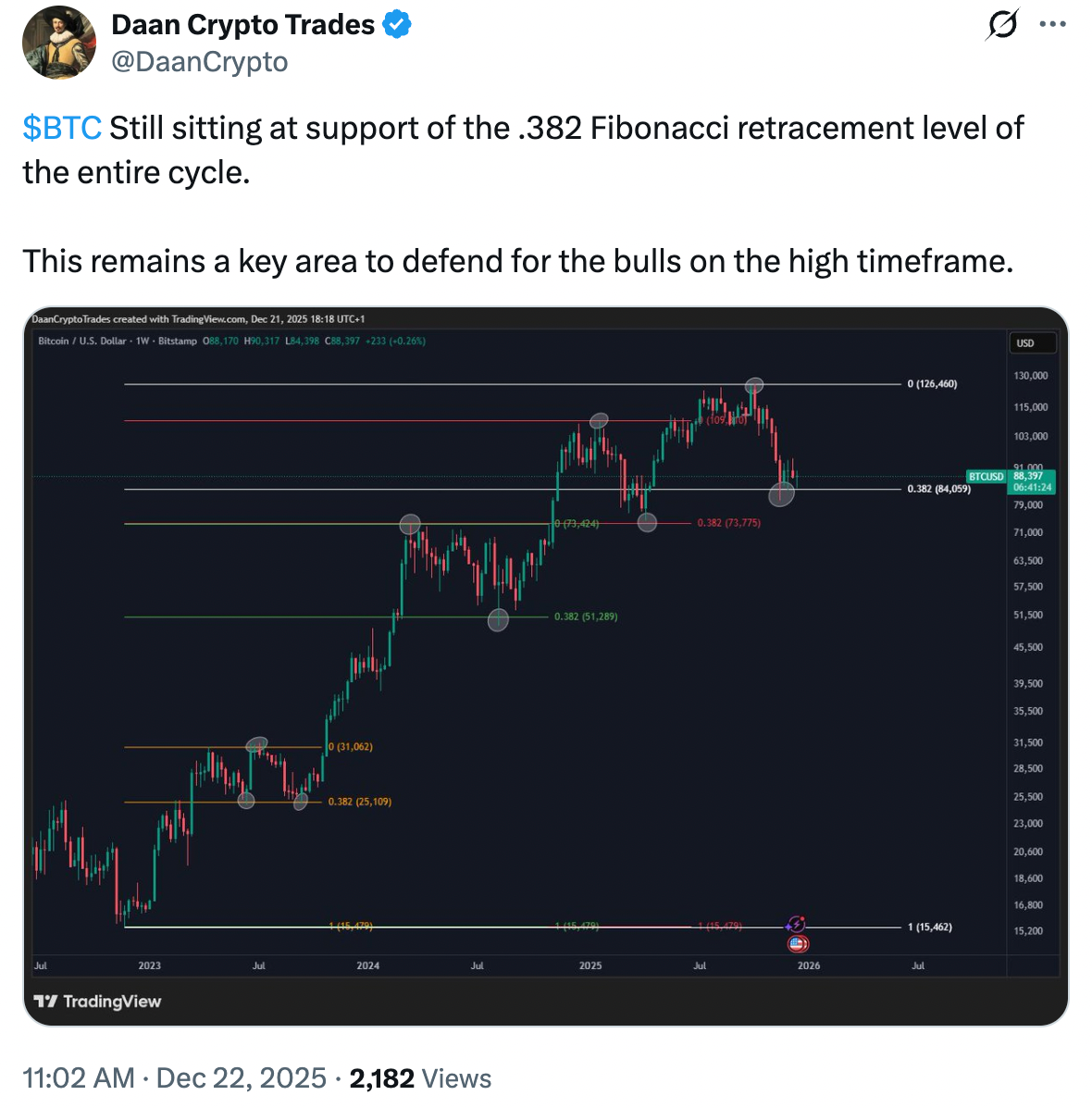 Trader and analyst Daan Crypto Trades said that $84,000 “remains a key area to defend for the bulls on the high timeframe.”