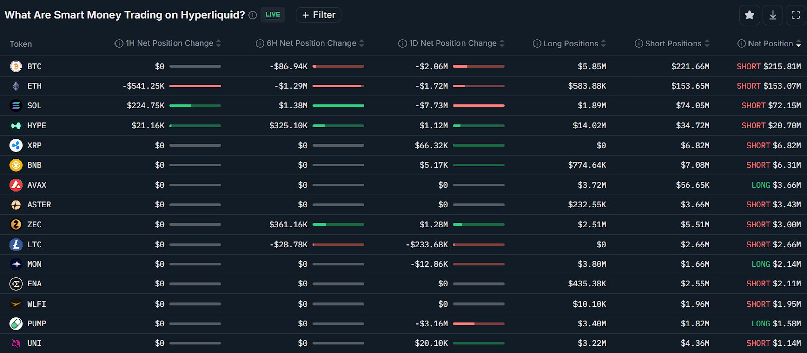 Smart money was net short on all the top cryptocurrencies, except the Avalanche (AVAX) token and the memecoin launchpad Pump.fun’s (PUMP) coin, according to Nansen.