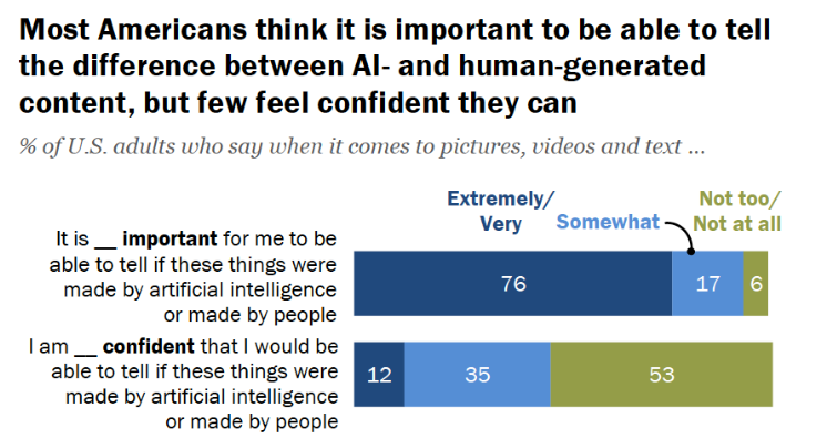 A September Pew Research study found that at least 76% of Americans say it’s important to be able to spot AI content, and only 47% are confident they can accurately detect it.