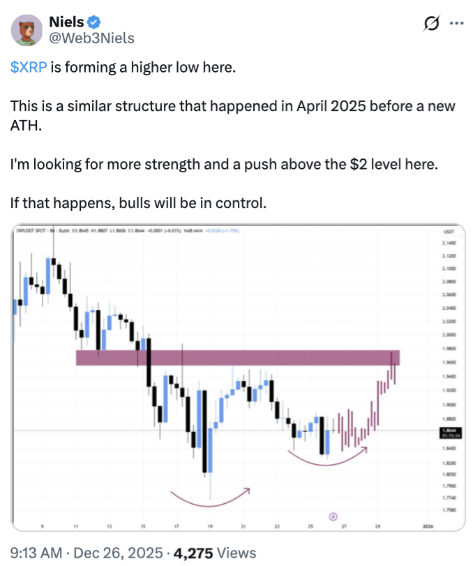 Crypto analysts are anticipating XRP’s price to trade sideways heading into the new year, at least until more bullish catalysts emerge.