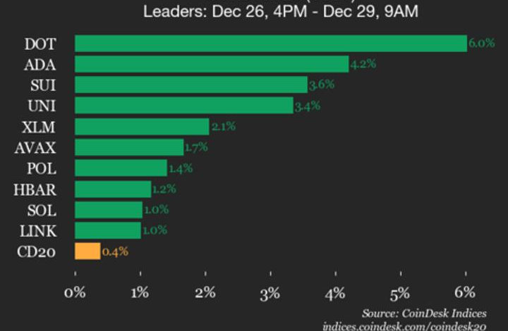 CoinDesk 20 Performance Update: Polkadot (DOT) Rises 6% Over Weekend