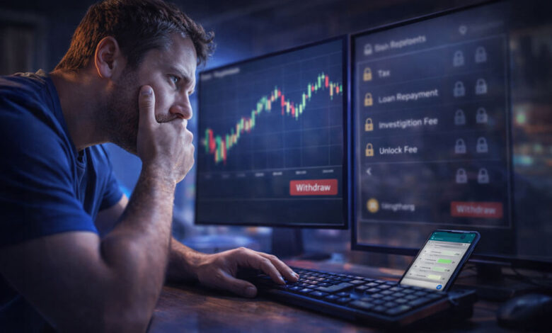 Investors logged into glossy crypto trading dashboards showing five-figure “profits,” then found themselves blocked from withdrawing a cent unless they first wired extra “taxes” or “loan repayments” to overseas accounts.