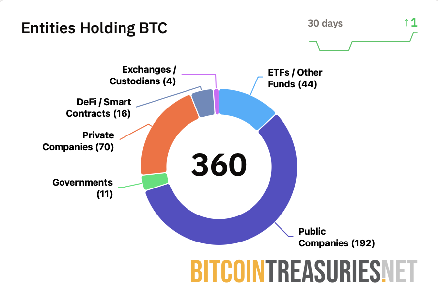 Entities holding Bitcoin. Source: BitcointTeasuries.NET