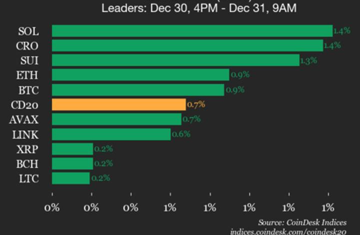 CoinDesk 20 Performance Update: Solana (SOL) Gains 1.4%, Leading the Index Higher