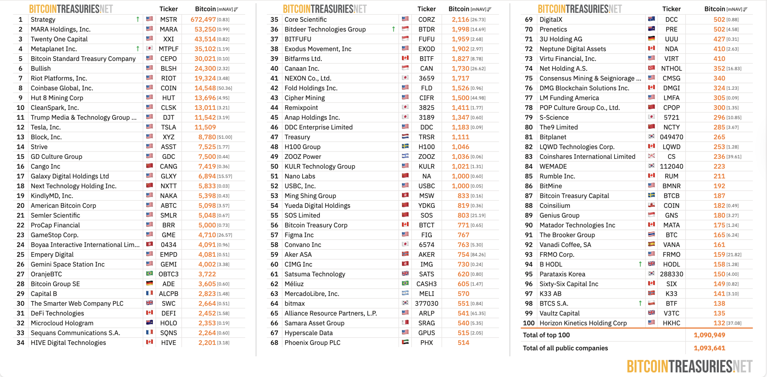 American Bitcoin is ranked as number 20 and has 5,098 BTC, valued at about $458 million, data from BitcoinTreasuries shows.