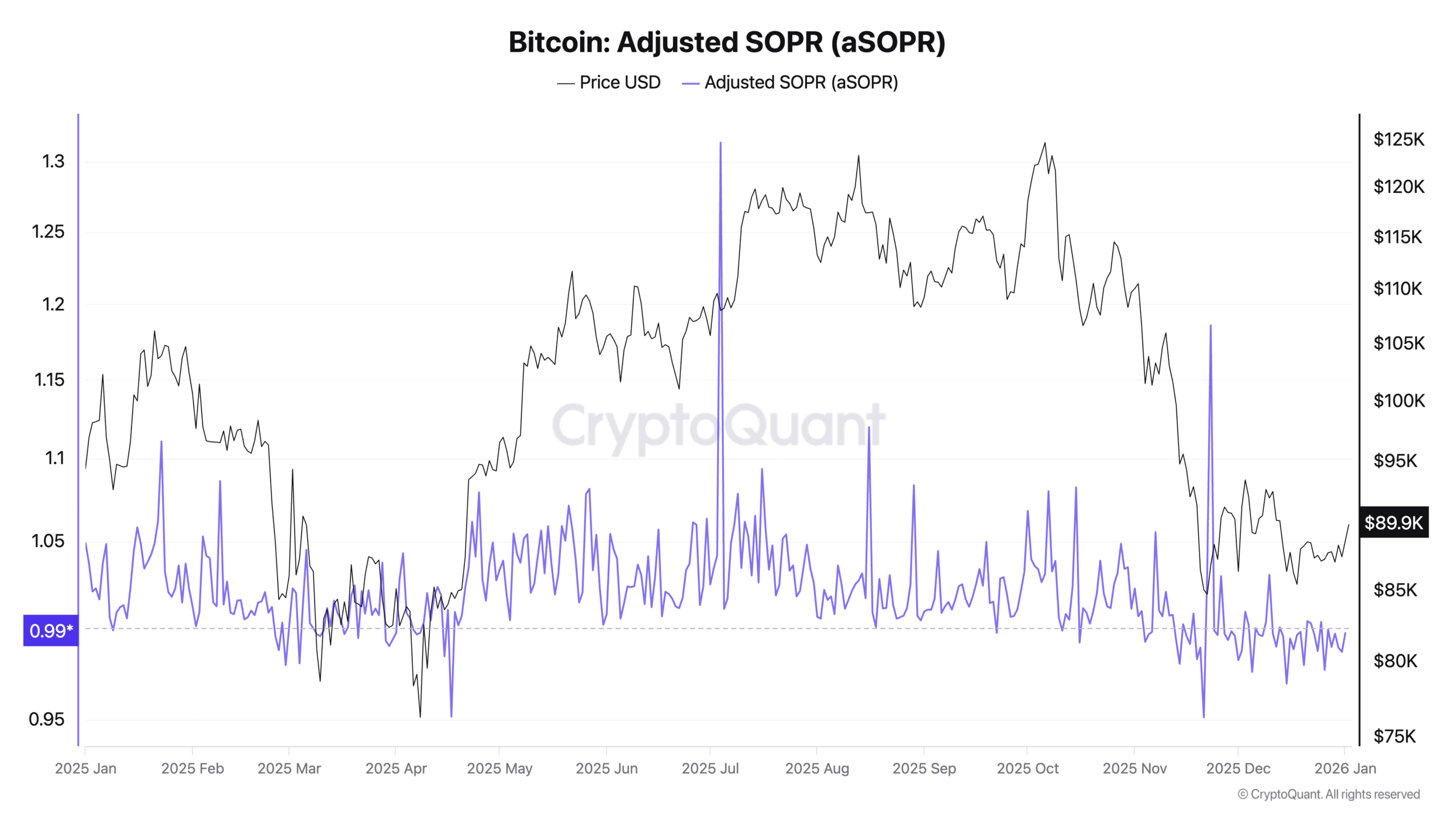 Why it mattered in 2025: Resilient uptrends showed a consistent tell: quick dips in aSOPR just below 1, followed by swift recoveries.