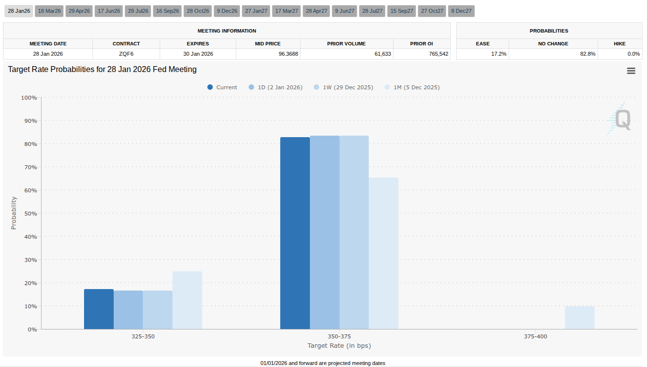 The latest data from CME Group’s FedWatch Tool puts the odds of a minimal 0.25% cut at just 17.2%.